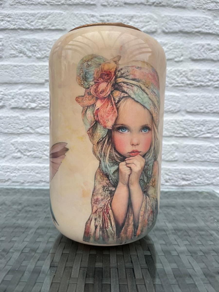 Ik leer je dan in 4-4,5 uur de technieken (decoupage) hoe je je eigen vaas of pot maakt. Helemaal naar je eigen smaak. Voor een handbeschilderde vaas heb je wel 6 uur nodig.