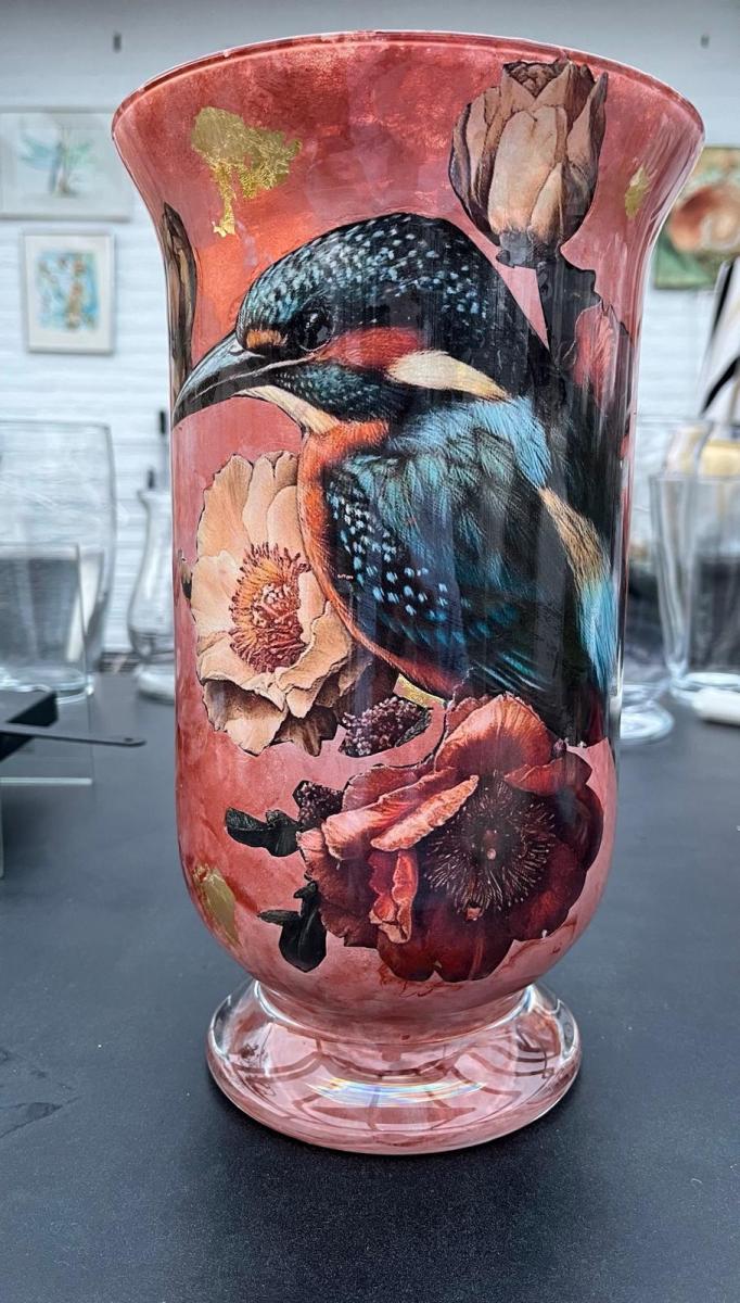 Ik leer je dan in 4-4,5 uur de technieken (decoupage) hoe je je eigen vaas of pot maakt. Helemaal naar je eigen smaak. Voor een handbeschilderde vaas heb je wel 6 uur nodig.